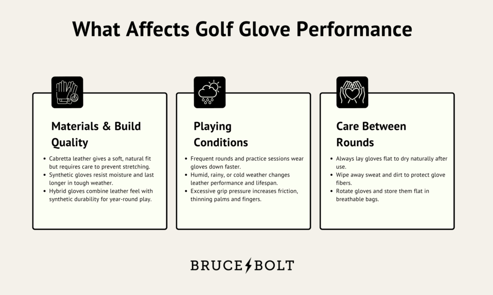 Golfers often assume every glove wears out the same way, but several factors determine how long yours will stay in playing shape.