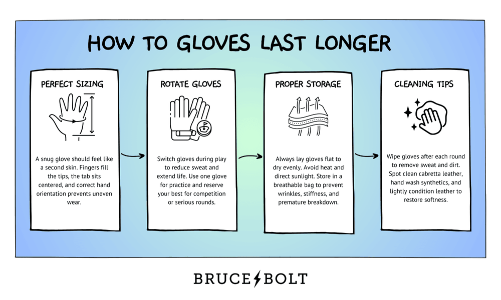 Rotation: Using two gloves during a round allows each to rest and dry, doubling overall lifespan.