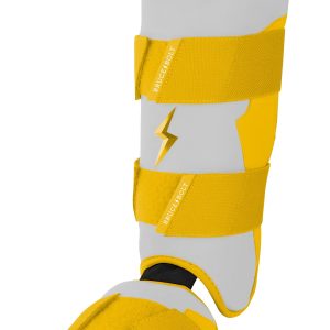 BRUCE BOLT’s PREMIUM PRO Leg & Ankle Guards feature a semi-moldable thermoplastic protective shell with a Cabretta leather outer and Sharkskin inner to keep the guard in place at the plate and while running the bases. 2 wide removable elastic strap locks the Leg guard in place providing maximum protection at the plate.