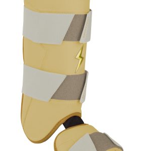 BRUCE BOLT’s PREMIUM PRO Leg & Ankle Guards feature a semi-moldable thermoplastic protective shell with a Cabretta leather outer and Shark Skin inner to keep the guard in place at the plate and while running the bases.? 2 wide removable elastic strap locks the Leg?guard in place providing maximum protection at the plate.