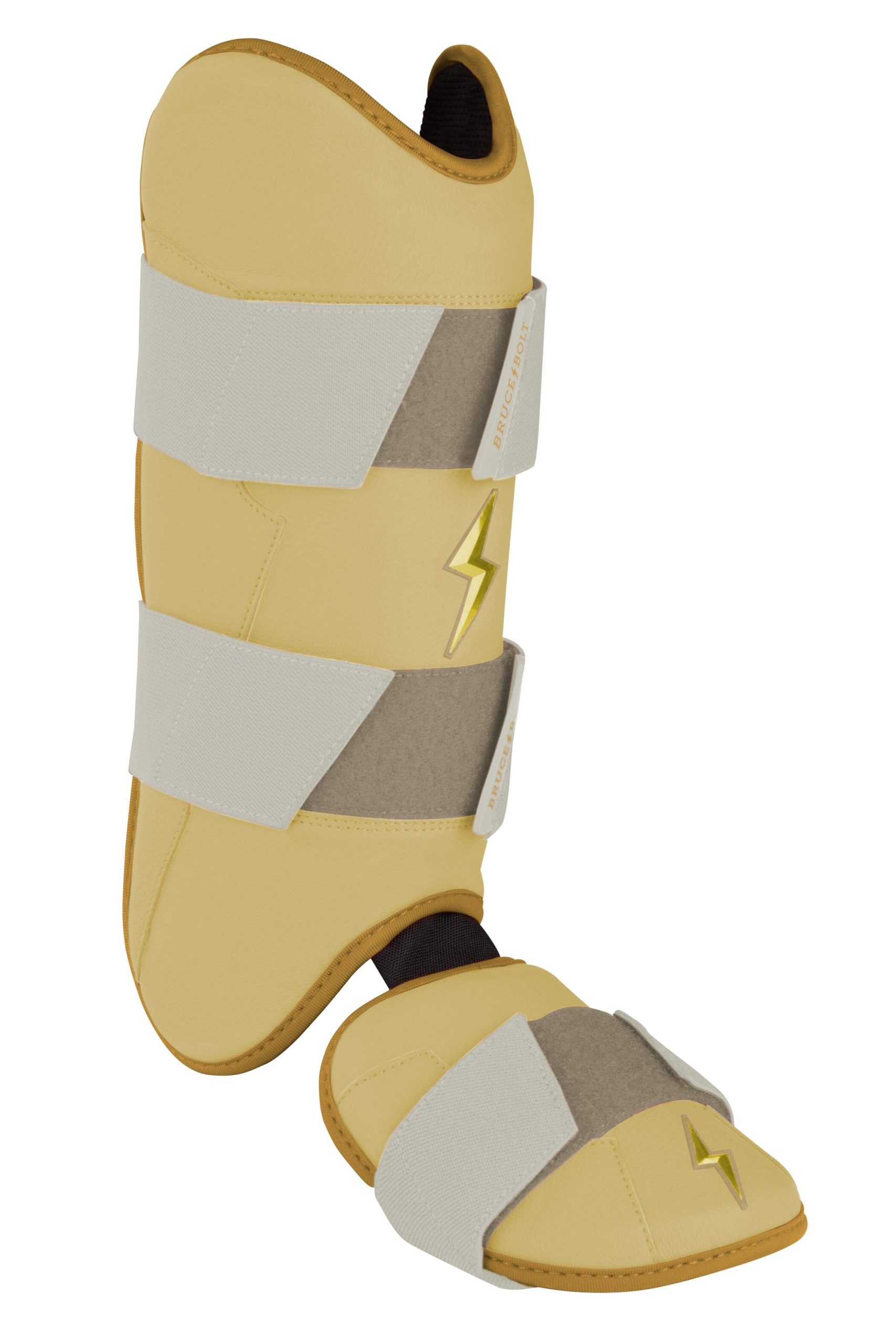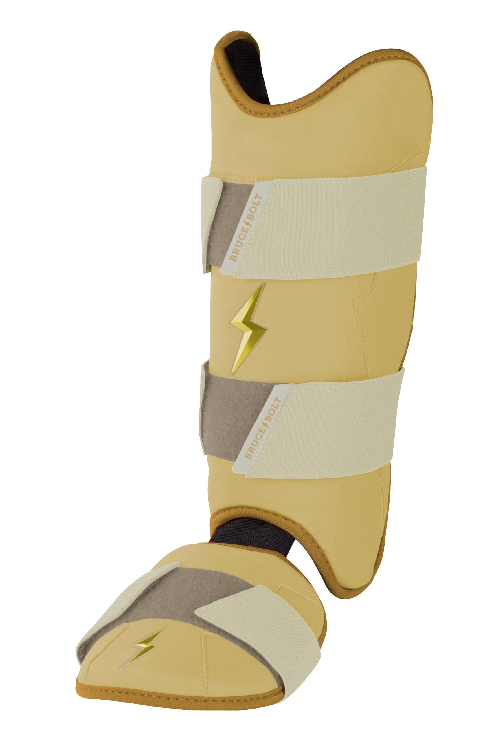BRUCE BOLT’s PREMIUM PRO Leg & Ankle Guards feature a semi-moldable thermoplastic protective shell with a Cabretta leather outer and Shark Skin inner to keep the guard in place at the plate and while running the bases.? 2 wide removable elastic strap locks the Leg?guard in place providing maximum protection at the plate.