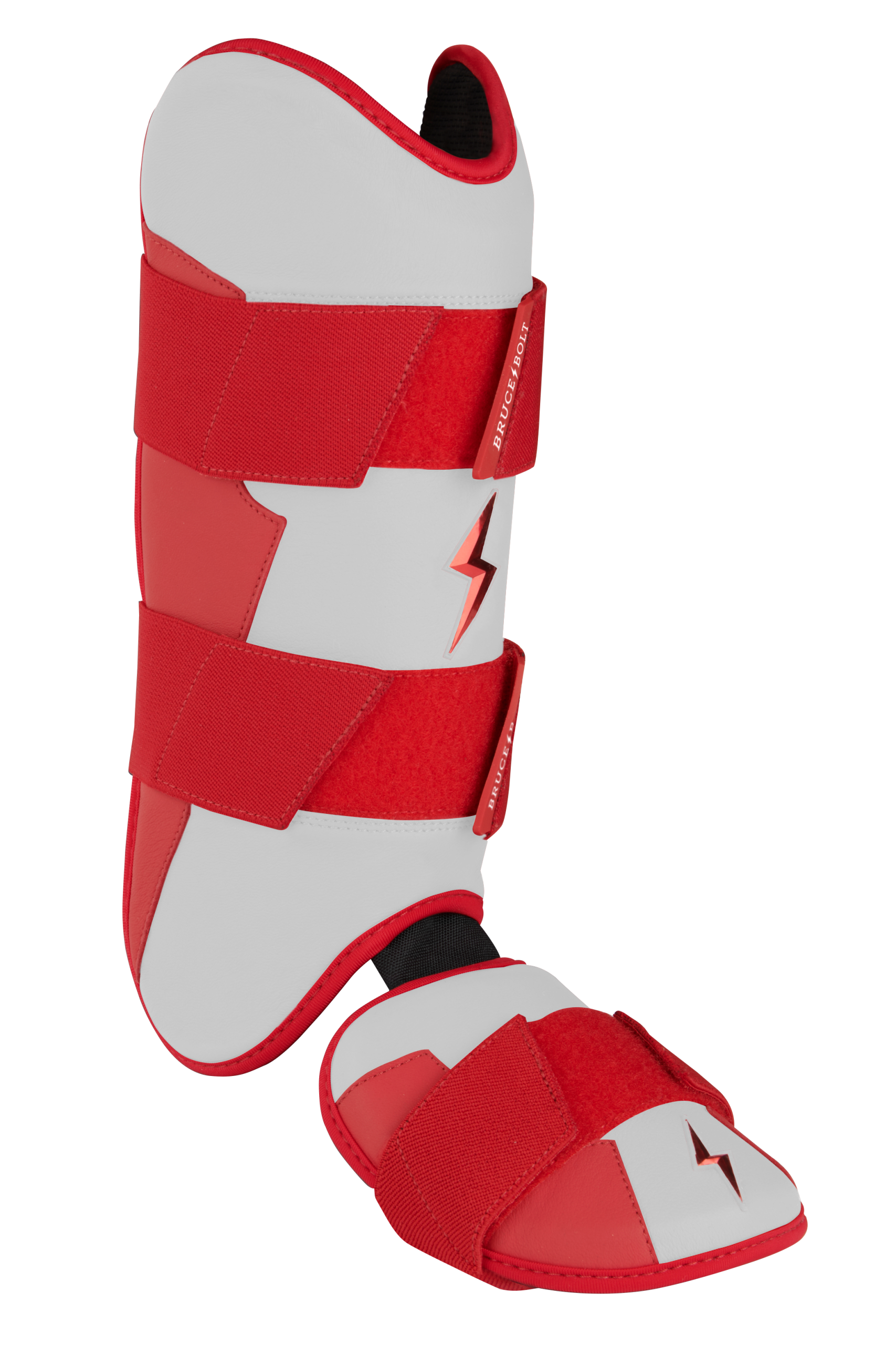 BRUCE BOLT’s PREMIUM PRO Leg & Ankle Guards feature a semi-moldable thermoplastic protective shell with a Cabretta leather outer and Sharkskin inner to keep the guard in place at the plate and while running the bases. 2 wide removable elastic strap locks the Leg guard in place providing maximum protection at the plate.