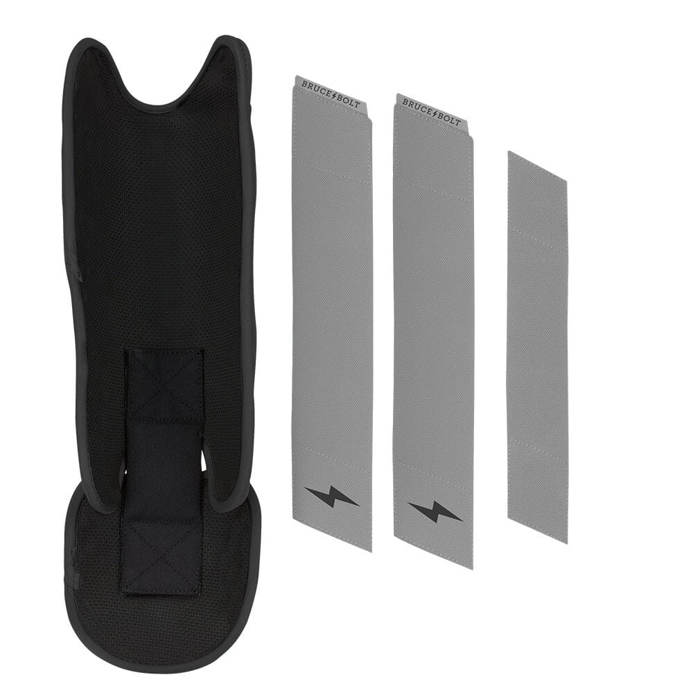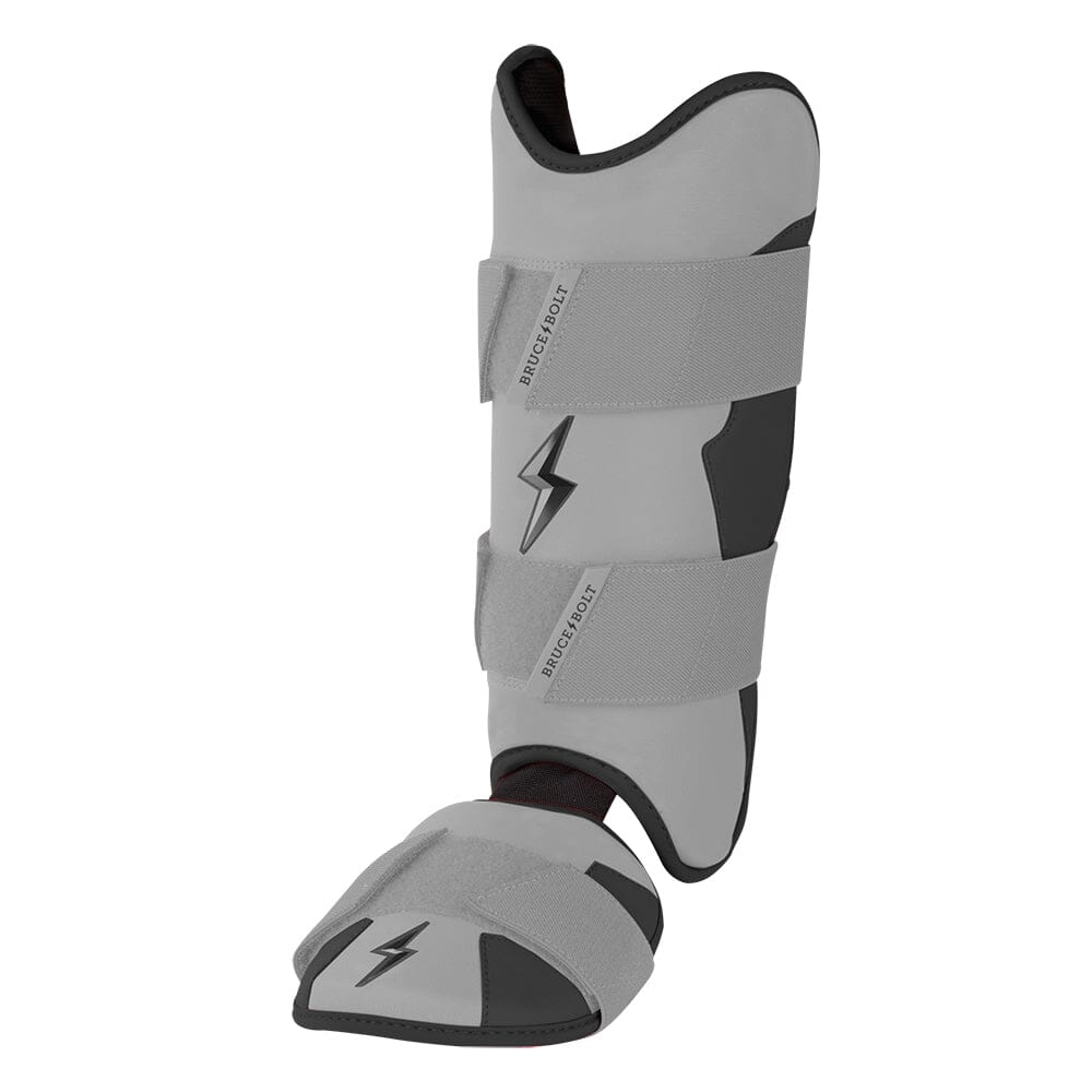 BRUCE BOLT’s PREMIUM PRO Leg & Ankle Guards feature a semi-moldable thermoplastic protective shell with a Cabretta leather outer and Shark Skin inner to keep the guard in place at the plate and while running the bases. 2 wide removable elastic strap locks the Leg guard in place providing maximum protection at the plate.
