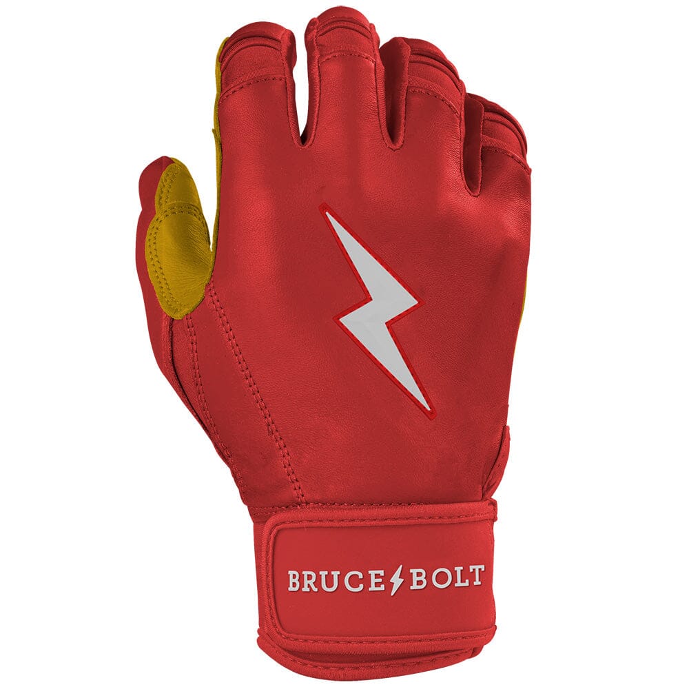HIGHEST QUALITY. MOST DURABLE BATTING GLOVE IN BASEBALL: Each pair of BRUCE BOLT batting gloves are handmade by skilled craftsmen using only the highest quality 0.9mm Cabretta leather and stitching techniques which makes our gloves buttery soft but more durable than any other glove on the market.