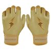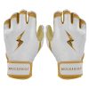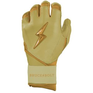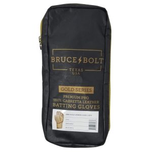 HIGHEST QUALITY. MOST DURABLE BATTING GLOVE IN BASEBALL: Each pair of BRUCE BOLT batting gloves are handmade by skilled craftsmen. Our GOLD Series gloves use 1.2mm Cabretta leather on the palm and the back of the glove which makes them buttery soft and more durable while providing better grip than any other glove on the market.