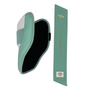 Designed by Eric with Bear these Elbow Guards feature a semi-moldable thermoplastic protective shell with a Cabretta leather outer and proprietary Sharkskin inner to prevent movement during the swing. 2 wide removable elastic strap locks the elbow guard in place providing maximum protection at the plate.