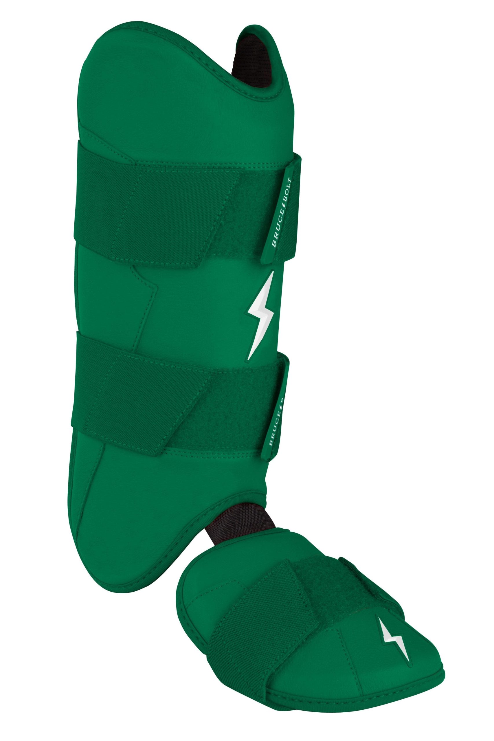 BRUCE BOLT’s PREMIUM PRO Leg & Ankle Guards feature a semi-moldable thermoplastic protective shell with a Cabretta leather outer and Shark Skin inner to keep the guard in place at the plate and while running the bases.? 2 wide removable elastic strap locks the Leg?guard in place providing maximum protection at the plate.